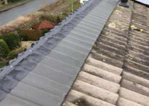 Door de harde wind zijn de nokvorsten van dit dak, afgewaaid. De oude nokvorsten waren geplaatst met een verouderde techniek, namelijk specie/cement. De nieuwe nokvorsten zijn door DAKCON geplaatst met de moderne techniek waarbij ook de bovenste rij dakpannen vervangen zijn.